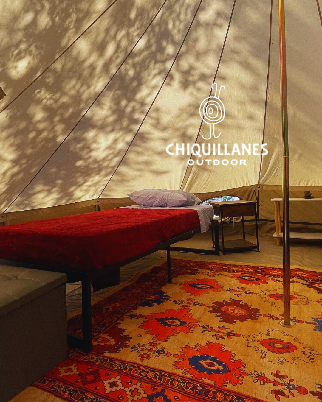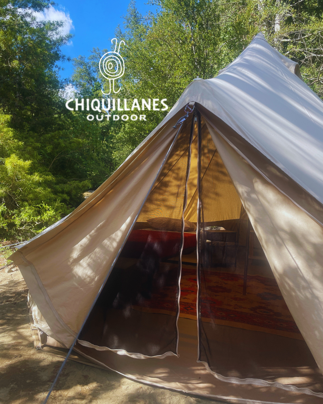La Carpa Chiquillanes es una carpa equipada hasta para 4 personas, instalada de forma permanente en un sitio privilegiado del camping del Parque Cordillera Los Quemados, con privacidad y entorno de bosque nativo.
