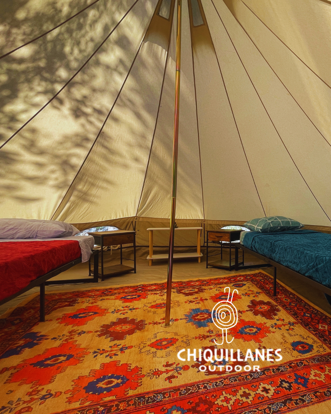 Carpa equipada hasta 4 personas, instalada en un sitio privilegiado del camping. Incluye camas, luz, internet y mobiliario. Ideal para caminantes que quieren descansar sin cargar carpa. Ingreso al parque y camping incluidos.